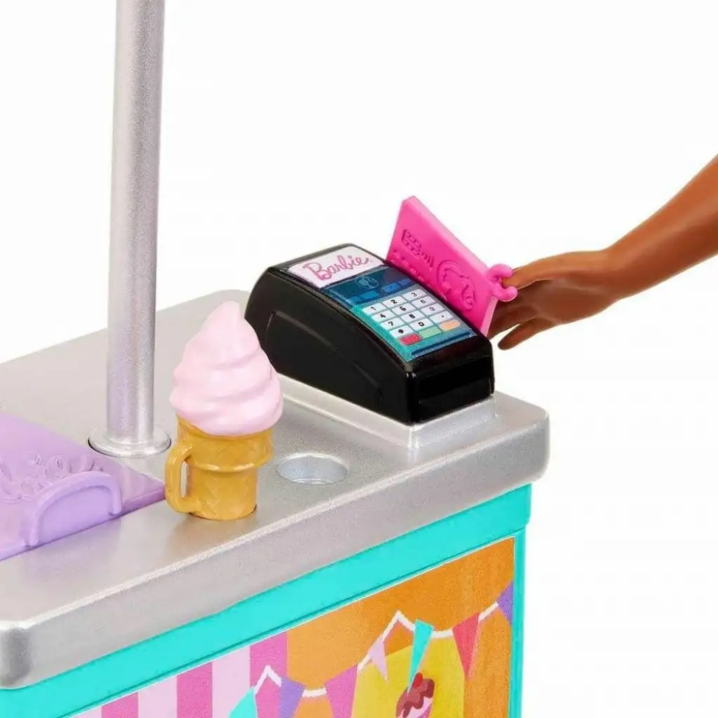 YouTube serisi Barbie ve Barbie Sette'den ilham alan oyun setinde havalı sörf tahtası detaylı bir atıştırmalık standı ve gerçekten dönen tekerlekleri olan bir dondurma büfesi bulunur!