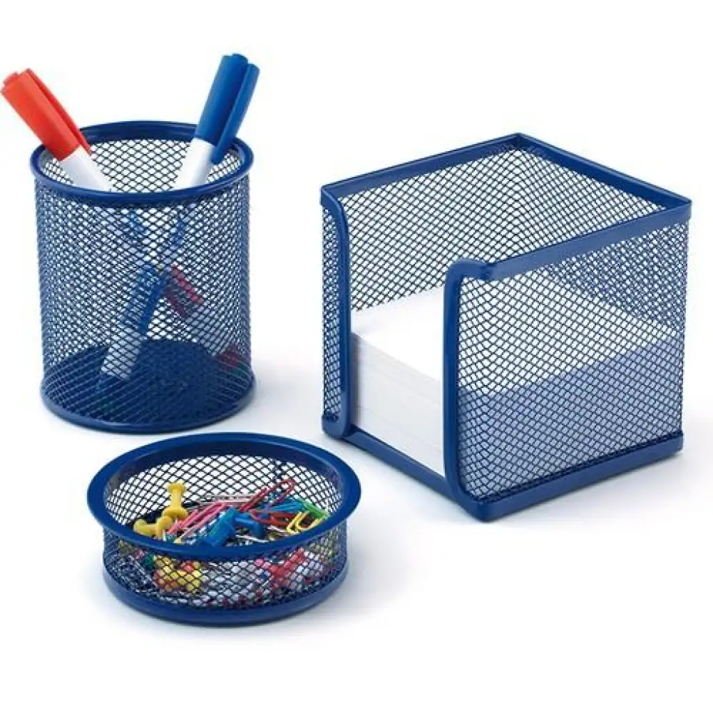 Set dayanıklı metalden yapılmış olup çalışma masasına düzen getirmeye hazır bir ürün ailesi set; kalemlik, ataşlık ve küp notluktan oluşmaktadır.