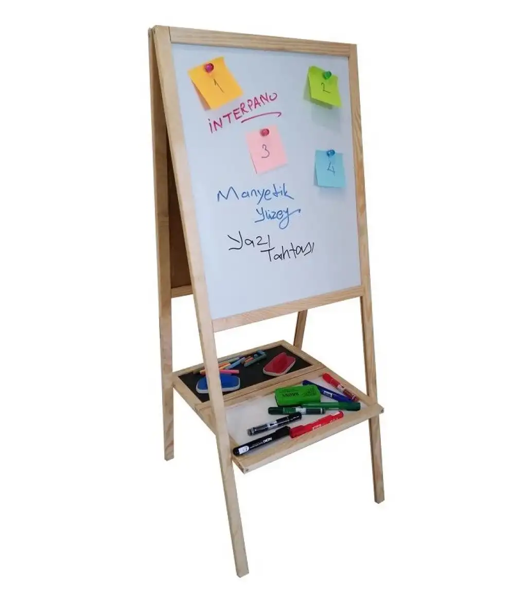 İnterpano 40*50 Çift Taraflı Ahşap Çerçeveli Kara Yazı Tahta Manyetik Beyaz 715