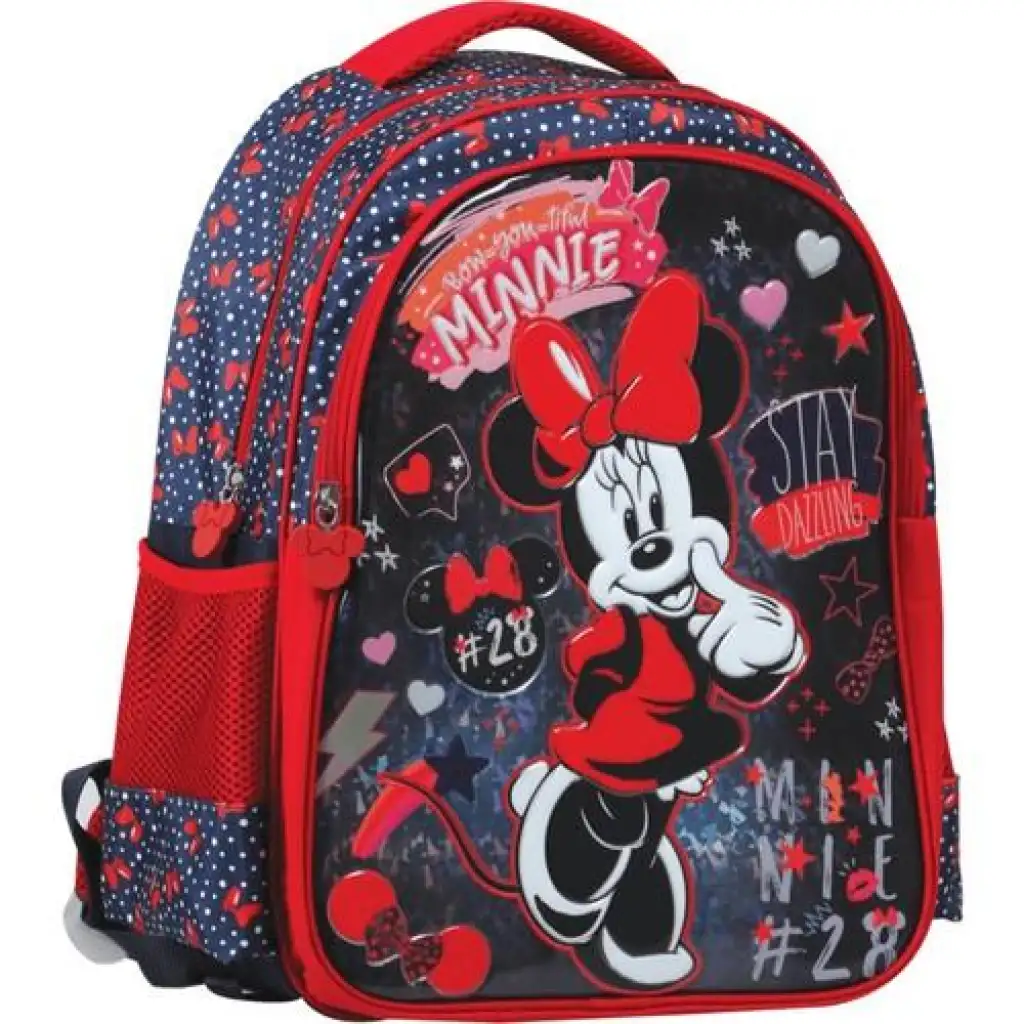 • Çocuklar en sevdikleri karakterlerden biri olan Minnie desenli bu şık okul çantası ile okula gitmeyi daha çok sevecekler.